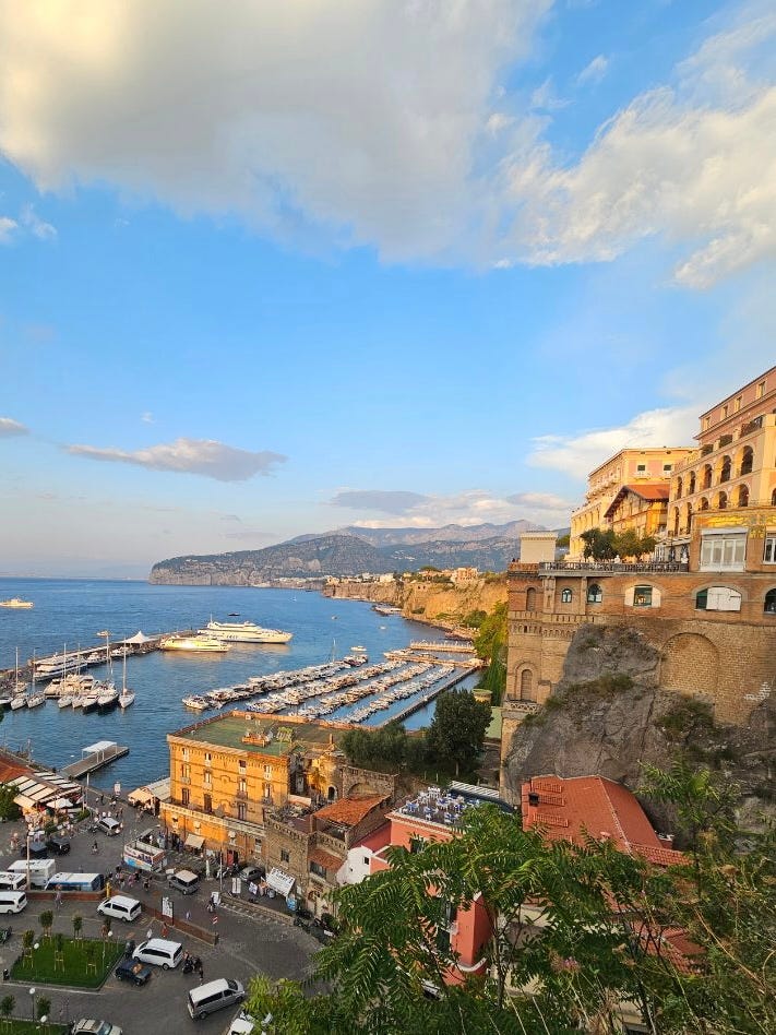 On the coastline, Sorrento’s warm, deep blue seas were perfect for paddle boarding. A colorful town, with citrus and pomegranate groves all around and fresh catch and tart limoncello to enjoy. A sunny, breezy boat ride to gritty Naples was lovely. Travel both expands horizons and deepens appreciation of home.